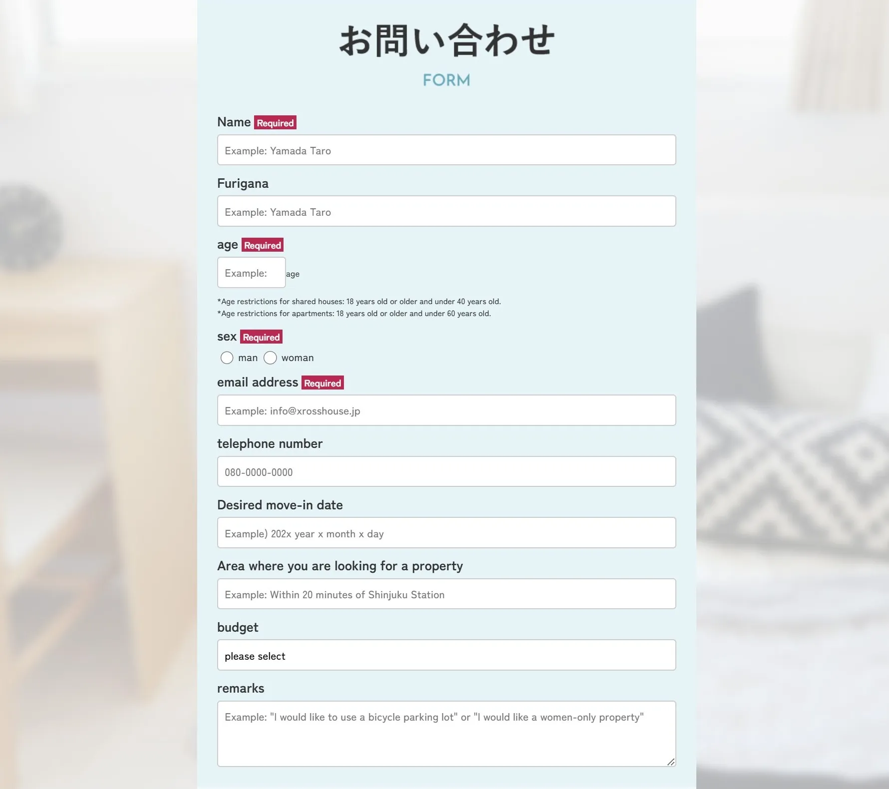 This can make the inquiry form look difficult at first, especially for foreign users.